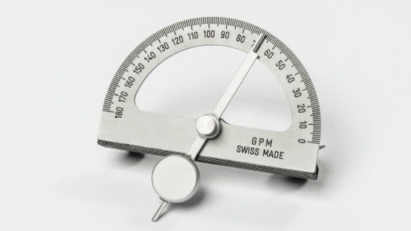 The screw-on goniometer is highly suitable for measuring angles especially on the face and facial bone structure. It can be attached to the beam compass (anthropometer No. 101), to the slide compass (No. 104) or to the calipers (No. 106-109).